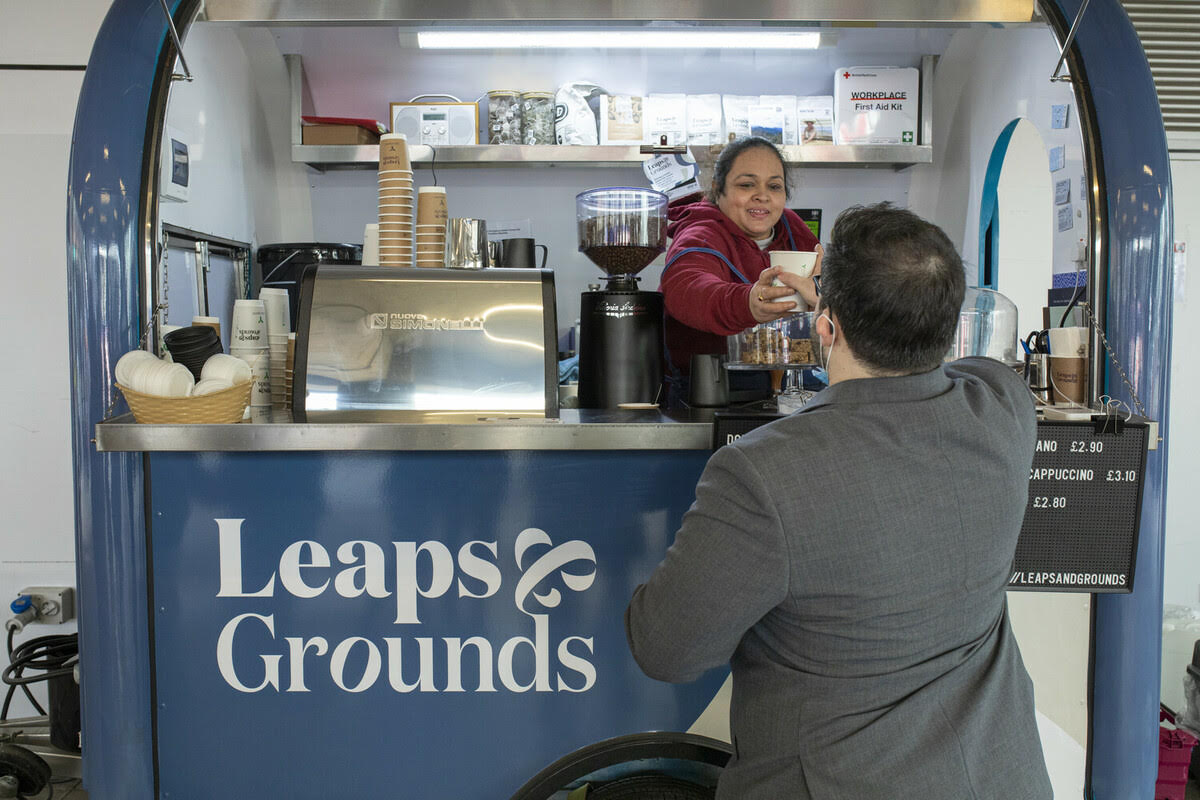 Leaps and Grounds es una empresa social de café cuyo objetivo es romper las barreras a la integración de las mujeres refugiadas en el Reino Unido. Ofrece formación especializada en barismo, experiencia laboral remunerada y tutorías individuales de empleabilidad para ayudar a las refugiadas a encontrar un empleo a largo plazo.