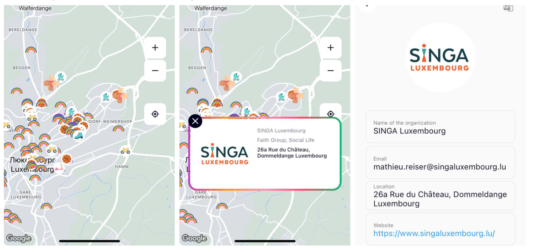 La plataforma “Riding the Rainbow” es una plataforma fácil de usar disponible como aplicación móvil y página web. Los residentes locales pueden crear fácilmente listados de los artículos que desean donar, como bicicletas, balones y material deportivo, con descripciones y fotos. La aplicación incorpora geolocalización, lo que permite a las familias refugiadas localizar los artículos donados en un mapa y conectar con los donantes de forma segura a través del chat de la aplicación. Las organizaciones de apoyo a los refugiados también pueden utilizar la aplicación para hacer llamamientos a la comunidad local, anunciar eventos relevantes y utilizar la aplicación para recoger esos mismos artículos. La Cruz Roja de Luxemburgo ha sido uno de los principales usuarios de la aplicación.
